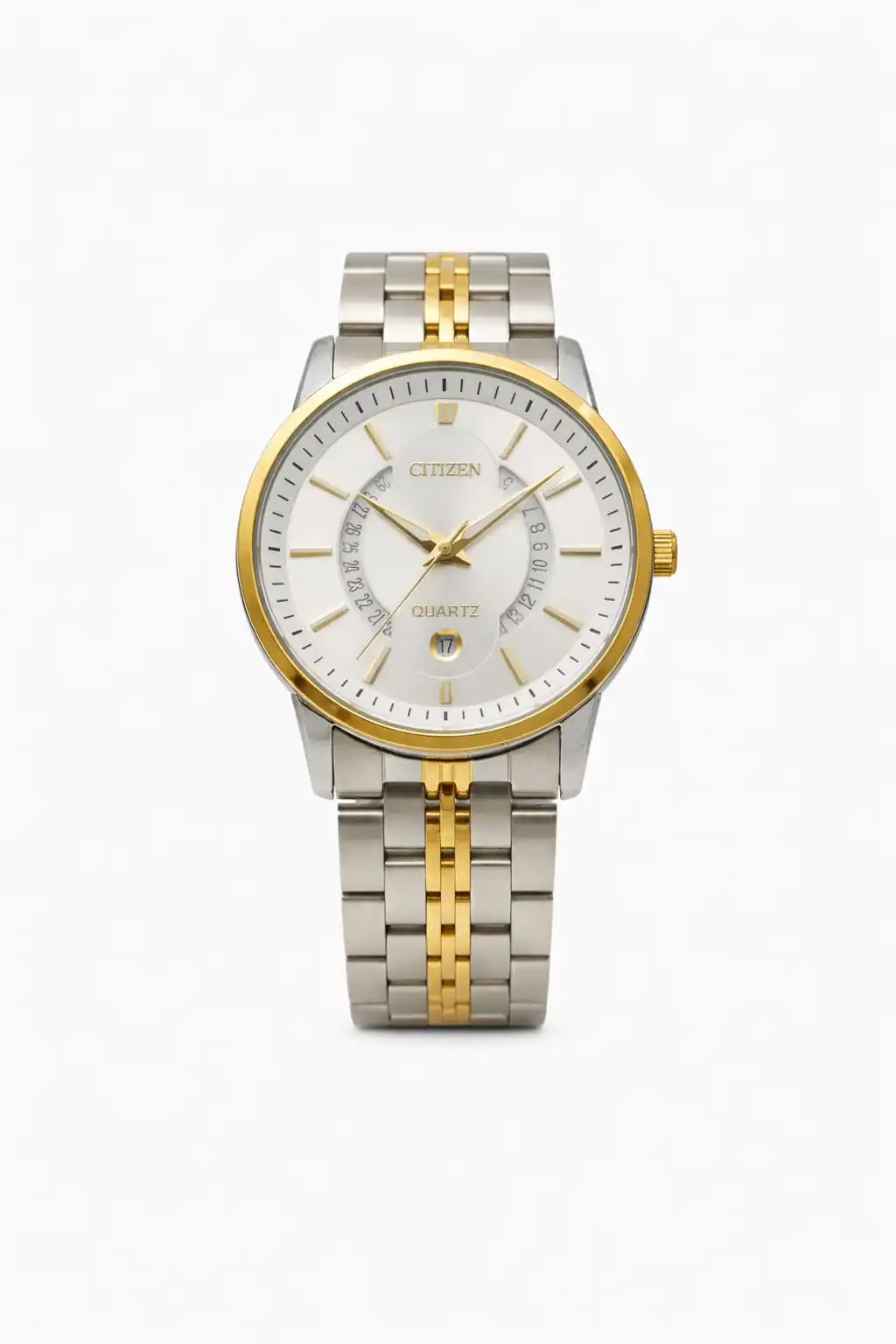 Dial: Crisp White dial with golden hour markers and hands for a luxury contrast.